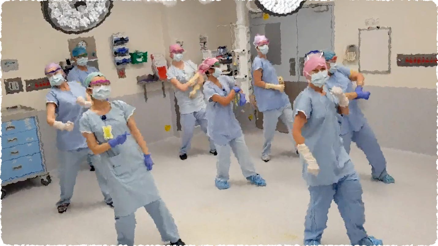 What’s with these nurses? Why wasn’t this recognized as a symptom of mass psychosis? The hospitals were supposed to have been overrun and the nurses risking their lives working around the clock. Instead they were dancing in the streets and in the corridors — and posting to TikTok.